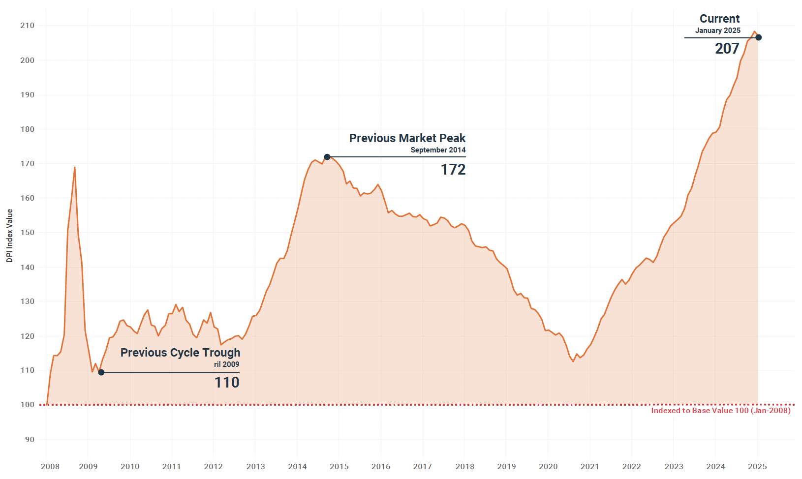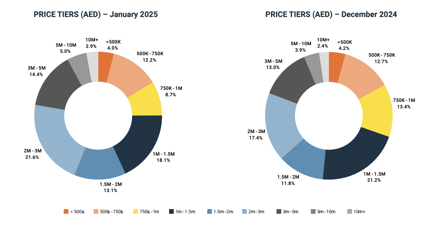 Despite a slight decline in property prices by 0.57%, the first since mid 2022, the market recorded its strongest January ever in terms of transactions, with 14,413 sales, underscoring a shift towards stabilization after years of rapid expansion. Off-plan properties remained highly popular, accounting for a significant portion of transactions, while overseas buyers continued to drive high-end sales, highlighting Dubai’s enduring appeal as a global investment hub
